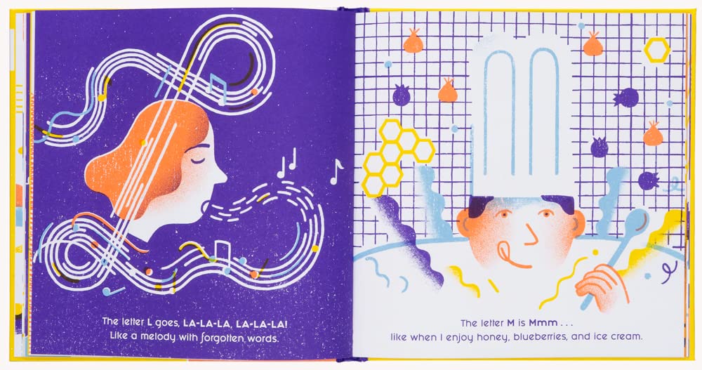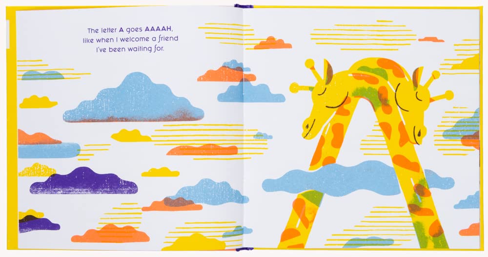 The letter A goes AAAAH! Like when I welcome a friend that I have been missing . . . The letter B goes B' B' B' B', like the bubbles in a bottle that I dip in the bath . . . The letter C goes K' K' K', like when I break the shell of a boiled egg . . . The sound of letters is an alphabet book unlike any other! This beautifully illustrated, colorful book of letters teaches the sound that the different letters make in a unique and fresh way.