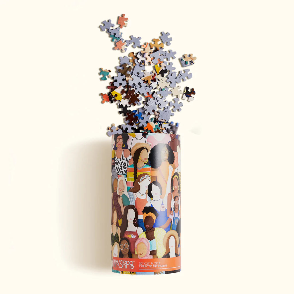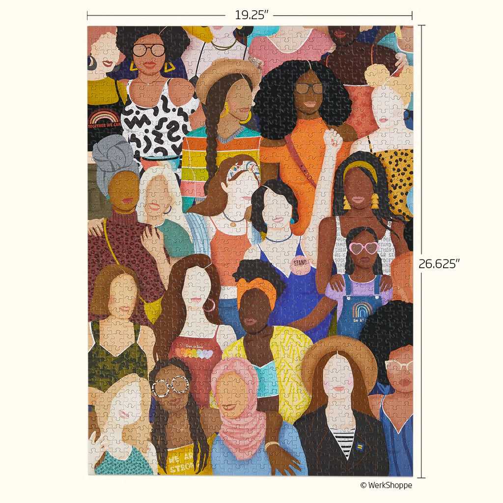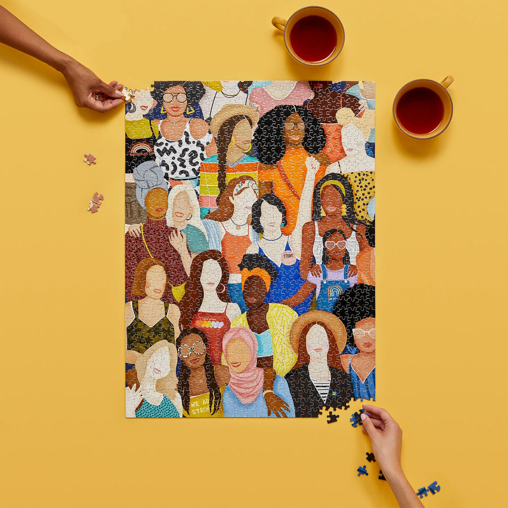"As simple as its name, Together We Can is a celebration of collective power. Filled with eye-catching patterns and vibrant colors, this design is imbued with uplifting, positive energy that makes the puzzle process that much more fun."