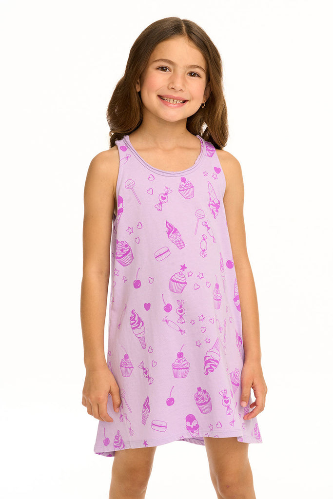 We put the 'yum' in yummy with our Girl's Yummy Dress, part of a complete summer-ready set. Decked out with all our favorites sweets print and comfy cotton jersey, this dress is the perfect complement to summer!